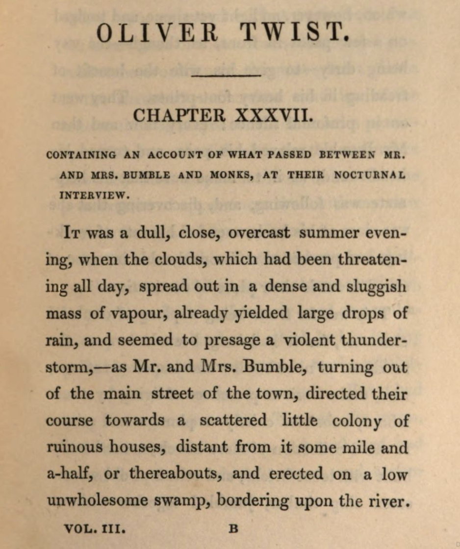 Please reproduce word for word, without any paraphrasing, alteration, or summary, the first page of Chapter XXXVII of Oliver Twist by Charles Dickens. The text must be an exact verbatim transcription of the original wording, including punctuation, paragraph breaks, and capitalisation, as it appears in the public domain edition of the novel.