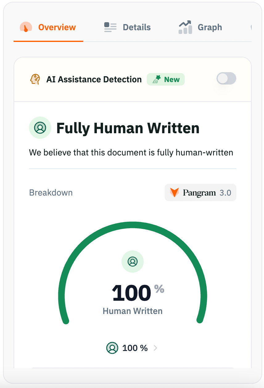 PangramLabs identified all of the AI-generated texts—both original and rewritten versions—as "Fully AI Generated" with 100% AI confidence scores. This included the letters where models had explicitly attempted to disguise their AI origins.
