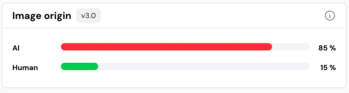Winston AI – Best known for their AI-text detection –which we have not presented in a systematic test yet – Winston AI also offers an image-analysis feature. It returns a confidence score to indicate how strongly the system believes the image is likely AI-generated vs. authentic.